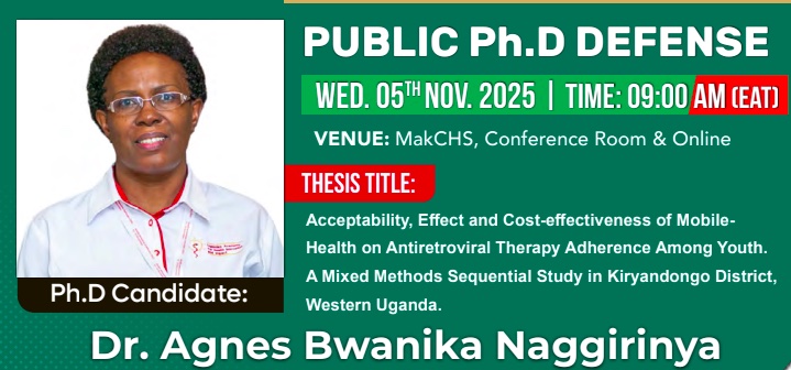 Thesis Title: “ACCEPTABILITY, EFFECT, AND COST-EFFECTIVENESS OF MOBILE-HEALTH ON ANTIRETROVIRAL THERAPY ADHERENCE AMONG YOUTH: A MIXED METHODS SEQUENTIAL STUDY IN KIRYANDONGO DISTRICT, WESTERN UGANDA.”